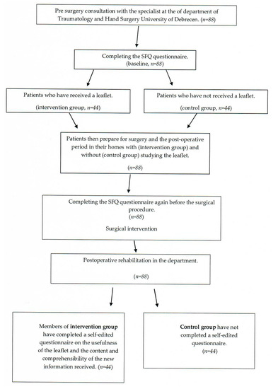 - The study included patients who had been booked for total knee arthroplasty and total hip arthroplasty surgery, and they had to agree to review our educational material and complete questionnaires about the evaluation of the educational booklet and the SFQ questionnaire, which assesses fear of the surgical process.