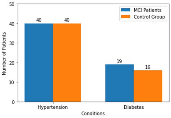 Patients over the age of 60 years were included in the study. Due to the discriminatory value of individual screening tests indicated in the literature, the MoCA scale proved to be the main diagnostic criterion in MCI diagnostics []. Patients who scored 19–25 on the MoCA scale were included in Group I, and those with an MoCA score of 26–30 were included in Group K. We adopted such score ranges based on previous studies conducted on the Polish older population []. Since the data indicate that combining screening tests increases their diagnostic accuracy in assigning patients to groups, the MMSE was also used (a score range of 24–26 for MCI, a score range of 27–30 was classified as correct; scores adjusted for age and education). In a situation where a patient scored below the cutoff point in only one of the screening tests (MMSE or MoCA), she/he was classified in the MCI group.