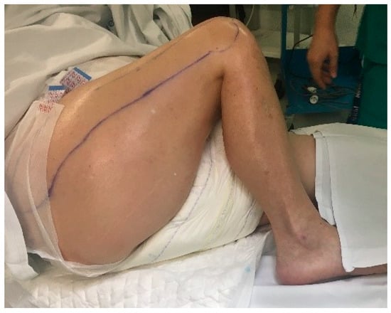 - Young, S.; Banza, L. Neglected traumatic anterior dislocation of the hip. Open reduction using the Bernese trochanter flip approach—A case report. Acta Orthop. 2017, 88, 348–350. [Google Scholar] [CrossRef]