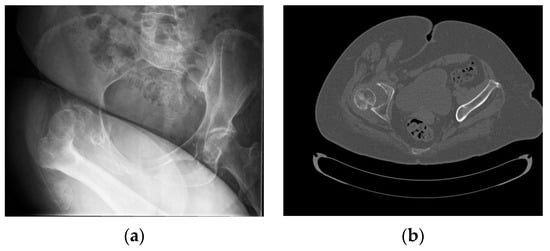 - Hougaard, K.; Thomsen, P.B. Traumatic posterior fracture-dislocation of the hip with fracture of the femoral head or neck, or both. J. Bone Jt. Surg. Am. 1988, 70, 233–239. [Google Scholar] [CrossRef]