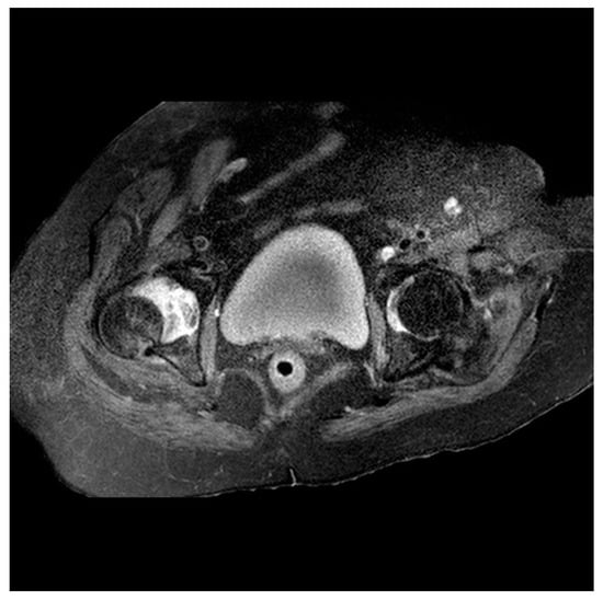Pelvic Magnetic Resonance Imaging (MRI). The viability of the femoral head and the absence of fractures are confirmed.