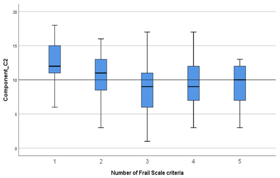 The mean scores for the Frail Scale criteria for General Well-Being and Self-Confidence (Component C2).