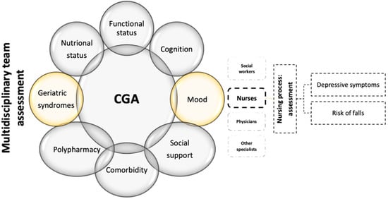 - Spirgiene, L.; Brent, L. Comprehensive Geriatric Assessment from a Nursing Perspective. In Fragility Fracture Nursing: Holistic Care and Management of the Orthogeriatric Patient; Hertz, K., Santy-Tomlinson, J., Eds.; Springer: Cham, Switzerland, 2018; pp. 41–52. [Google Scholar]