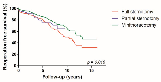 Kaplan-Meier curves: reoperation-free survival, according to the three access types.