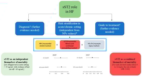 Being a non-cardiac-specific biomarker, sST2 is less useful for diagnosing HF, but has proven helpful for risk stratification, both in chronic and acute settings [30].