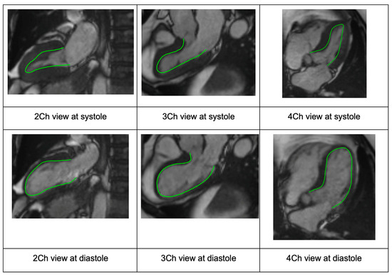 After assignment to the different age and gender groups, the image quality of Cine SSFP MR long-axis images for 2CH, 3CH and 4CH was assessed for each subject. If image quality was found to be insufficient (e.g., due to a misangulation of slices or visual artifacts hindering the border definition of the LV), the subject’s dataset was replaced with that of another randomly selected subject matched for age, sex and LVEF.