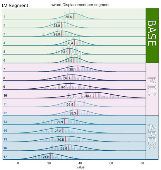 The following supporting information can be downloaded at: https://www.mdpi.com/article/10.3390/jcdd10120474/s1, Figure S1: Scatterplot showing the correlation between inward displacement and ejection fraction; Table S1: Reference ranges of InD for each of the 17 LV-segments for all age categories.