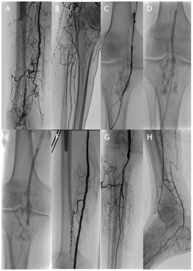 - Stoner, M.C.; Calligaro, K.D.; Chaer, R.A.; Dietzek, A.M.; Farber, A.; Guzman, R.J.; Hamdan, A.D.; Landry, G.J.; Yamaguchi, D.J. Reporting standards of the Society for Vascular Surgery for endovascular treatment of chronic lower extremity peripheral artery disease: Executive summary. J. Vasc. Surg. 2016, 64, 227–228. [Google Scholar] [CrossRef]