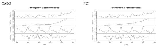 What is also quite an interesting finding is the seasonality of time series in both the PCI and CABG models. Specifically, our study uncovers seasonality in the risk profiles of treated patients. A study by Stewart et al. (2017) supports our finding by mentioning that the majority of studies state higher hospitalization and mortality frequency during the winter months in comparison to summer periods. They also suggest that the reason behind this issue is multifactorial and may be related to physiological responses to cold and heat, behavioral changes in particular seasons, vitamin D deficiency, ambient air pollutants, and susceptibility to infectious diseases [].