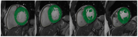 - Suinesiaputra, A.; Bluemke, D.A.; Cowan, B.R.; Friedrich, M.G.; Kramer, C.M.; Kwong, R.; Plein, S.; Schulz-Menger, J.; Westenberg, J.J.; Young, A.A.; et al. Quantification of LV function and mass by cardiovascular magnetic resonance: Multi-center variability and consensus contours. J. Cardiovasc. Magn. Reson. 2015, 17, 63. [Google Scholar] [CrossRef] [PubMed]