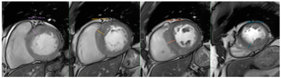 - Schulz-Menger, J.; Bluemke, D.A.; Bremerich, J.; Flamm, S.D.; Fogel, M.A.; Friedrich, M.G.; Kim, R.J.; von Knobelsdorff-Brenkenhoff, F.; Kramer, C.M.; Pennell, D.J.; et al. Standardized image interpretation and post processing in cardiovascular magnetic resonance: Society for Cardiovascular Magnetic Resonance (SCMR) board of trustees task force on standardized post processing. J. Cardiovasc. Magn. Reson. 2013, 15, 35. [Google Scholar] [CrossRef]