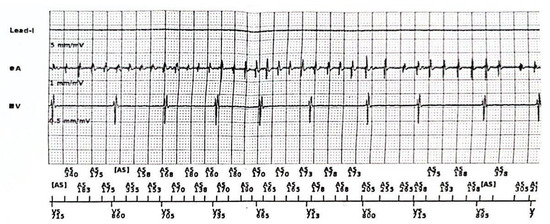 Our case series is therefore a warning to consider the RyR2 mutation in the etiology of complete AV block in a relatively young patient. Complete atrio-ventricular block was only reported in the father, while the children, although they have the same mutation, do not have conduction defects. Is it possible that they will develop it over the years? Unfortunately, this is an unanswerable question. It is probable that the varying penetrance and expressivity of the RyR2 gene mutation may result in different clinical phenotypes. As already suggested in the literature, it is also possible that the extent of the RyR2 gene deletion also influences the clinical phenotype and, in particular, the development of conduction defects [9]. However, it is crucial to monitor these patients closely over time and, on the other hand, the occurrence of idiopathic complete atrio-ventricular block in a relatively young patient may suggest investigating genetic causes. Furthermore, it can be speculated that the greater length of the RyR2 gene deletion than known in the literature may play a role in causing complete atrio-ventricular block.