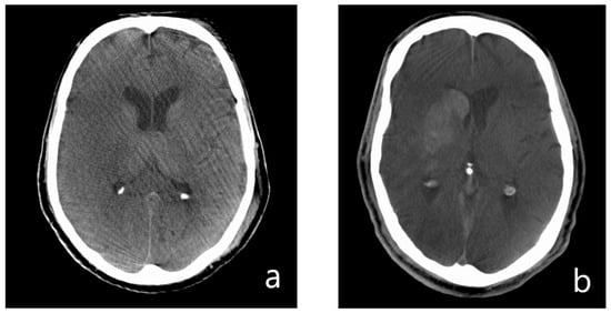 - Yoon, W.; Seo, J.J.; Kim, J.K.; Cho, K.H.; Park, J.G.; Kang, H.K. Contrast enhancement and contrast extravasation on computed tomography after intra-arterial thrombolysis in patients with acute ischemic stroke. Stroke 2004, 35, 876–881. [Google Scholar] [CrossRef]