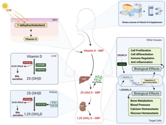 Vitamin D: sources and metabolic processes, and activation mechanisms. Created with BioRender.com.