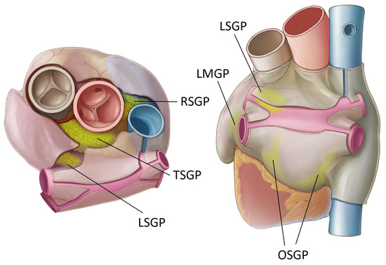 - The left superior GP (LSGP) is located at the junction of the left superior pulmonary vein with the posterior left atrium, in the left superolateral area.