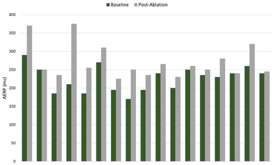 Paired baseline and post-ablation AERP values for patients in safety and feasibility study.