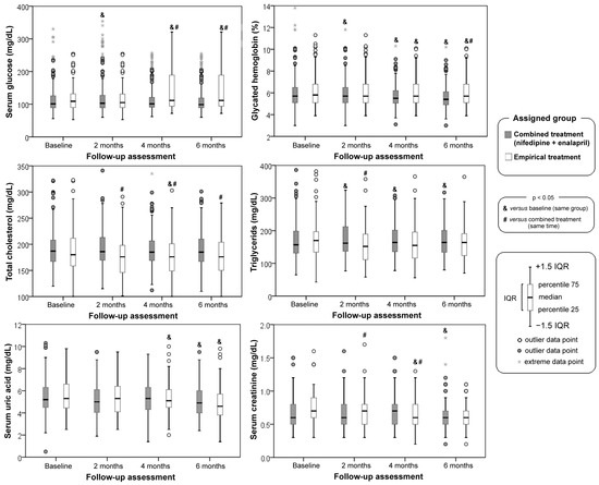 | After 6 months of treatment | Empirical treatment | Enalapril + nifedipine | p value |