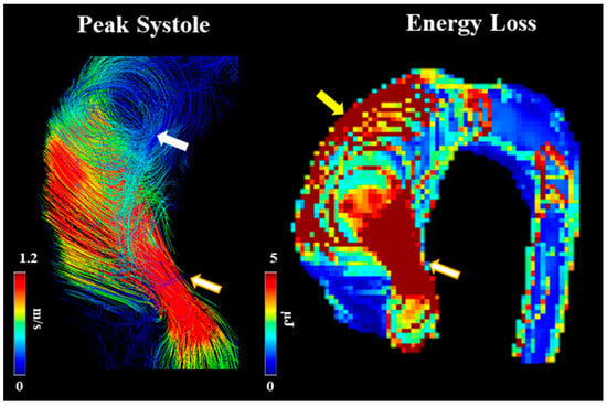 - Barker, A.J.; van Ooij, P.; Bandi, K.; Garcia, J.; Albaghdadi, M.; McCarthy, P.; Bonow, R.O.; Carr, J.; Collins, J.; Malaisrie, S.C.; et al. Viscous energy loss in the presence of abnormal aortic flow. Magn. Reson. Med. 2014, 72, 620–628. [Google Scholar] [CrossRef] [PubMed]