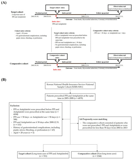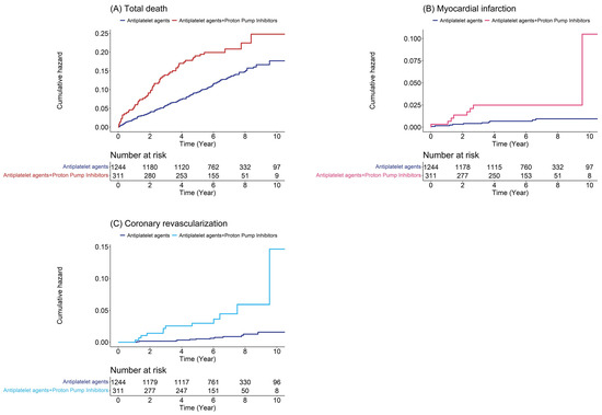 - Hsiao, F.-Y.; Mullins, C.D.; Wen, Y.-W.; Huang, W.-F.; Chen, P.-F.; Tsai, Y.-W. Relationship between cardiovascular outcomes and proton pump inhibitor use in patients receiving dual antiplatelet therapy after acute coronary syndrome. Pharmacoepidemiol. Drug Saf. 2011, 20, 1043–1049. [Google Scholar] [CrossRef] [PubMed]