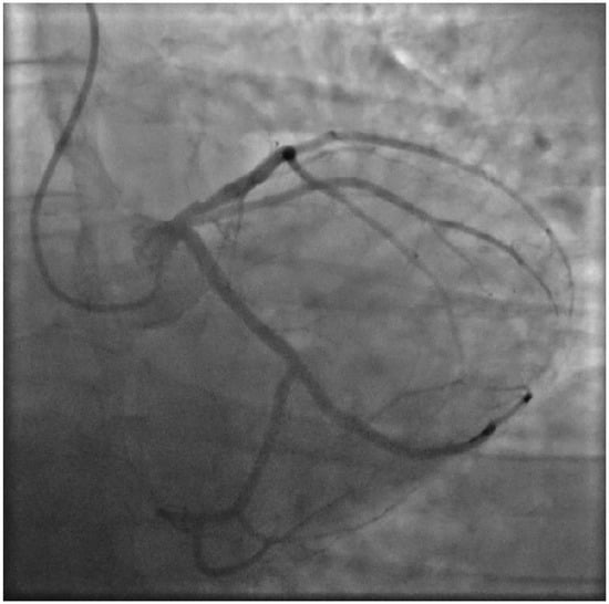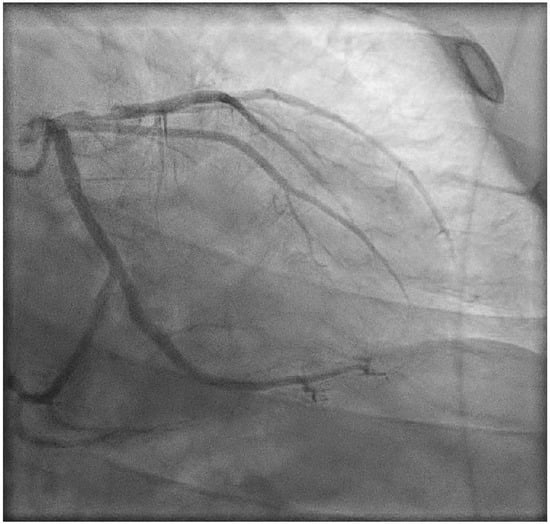 Cancer survivors treated with mediastinal irradiation more often present with ostial and proximal coronary lesions and more extensive CAD compared to the general population [7]. Additionally, plaque development and morphology may differ in these patients, and radiotherapy-induced atherosclerosis may lead to non-calcified morphologies more often, which cannot be detected by coronary artery calcium (CAC) scoring [8,9,10]. In this case report, we present a patient without cardiovascular risk factors and minimal atherosclerosis on invasive coronary angiography four months prior to acute myocardial infarction.