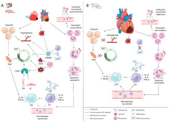 - Aurora, A.B.; Porrello, E.R.; Tan, W.; Mahmoud, A.I.; Hill, J.A.; Bassel-Duby, R.; Sadek, H.A.; Olson, E.N. Macrophages are required for neonatal heart regeneration. J. Clin. Investig. 2014, 124, 1382–1392. [Google Scholar] [CrossRef] [PubMed]