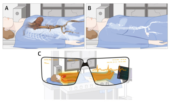 - Opolski, M.P.; Debski, A.; Borucki, B.A.; Staruch, A.D.; Kepka, C.; Rokicki, J.K.; Sieradzki, B.; Witkowski, A. Feasibility and safety of augmented-reality glass for computed tomography-assisted percutaneous revascularization of coronary chronic total occlusion: A single center prospective pilot study. J. Cardiovasc. Comput. Tomogr. 2017, 11, 489–496. [Google Scholar] [CrossRef]