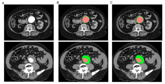 - Lareyre, F.; Adam, C.; Carrier, M.; Dommerc, C.; Mialhe, C.; Raffort, J. A fully automated pipeline for mining abdominal aortic aneurysm using image segmentation. Sci. Rep. 2019, 9, 13750. [Google Scholar] [CrossRef] [PubMed]