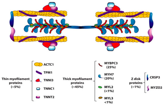 Figure 10. Sarcomeric proteins, carried by missense mutations of causative genes in HCM (from [13]), with permission.
