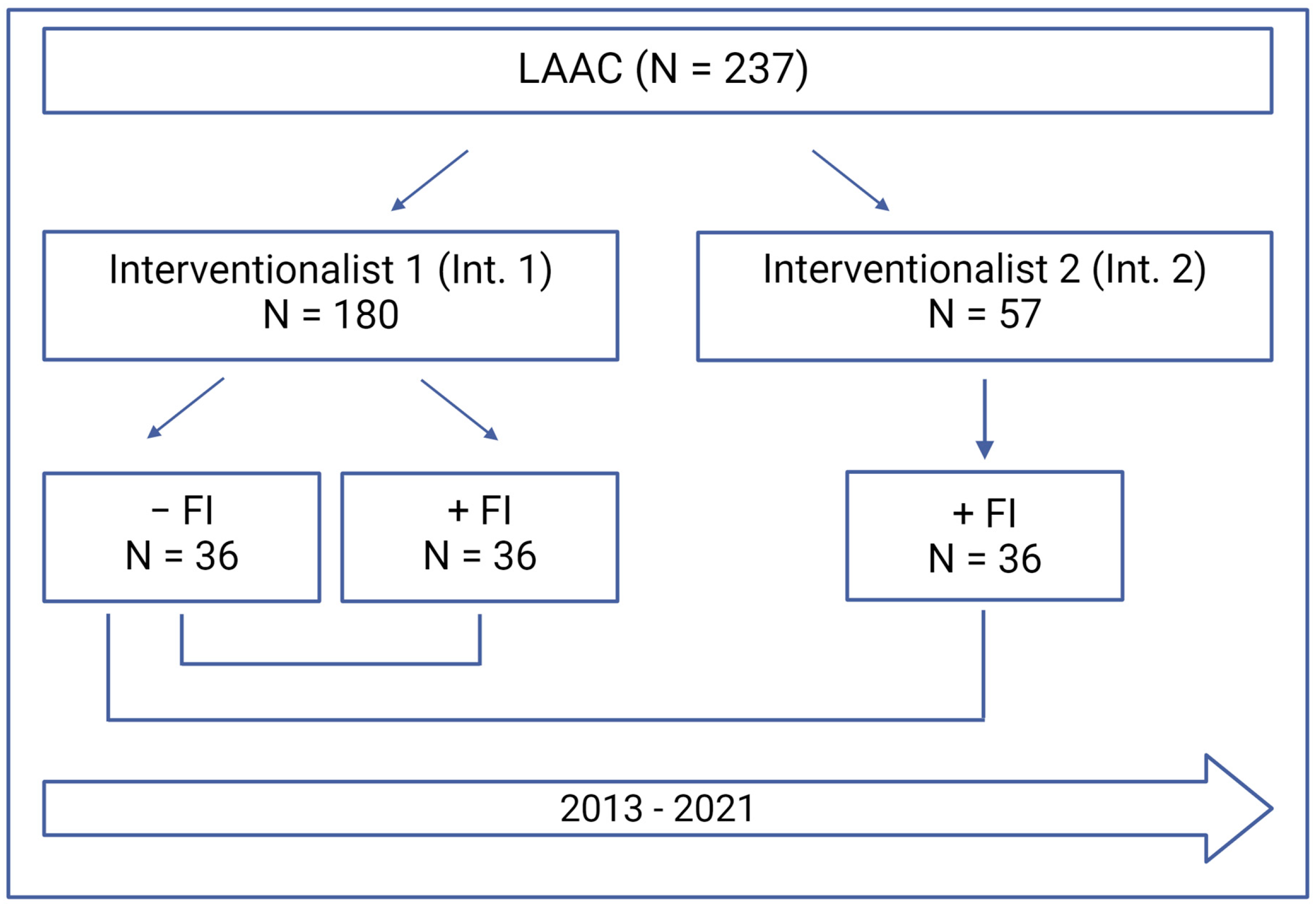 | Variable | Interventionalist 1 −FI, N = 36 | Interventionalist 1 +FI, N = 36 | Interventionalist 2 +FI, N = 36 | p-Value |