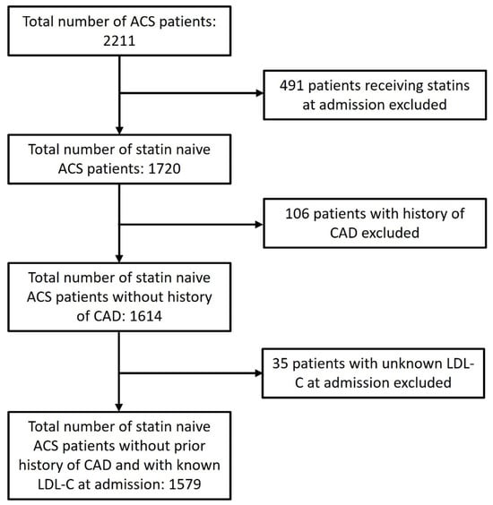 - Sato, R.; Matsuzawa, Y.; Yoshii, T.; Akiyama, E.; Konishi, M.; Nakahashi, H.; Minamimoto, Y.; Kimura, Y.; Okada, K.; Maejima, N.; et al. Impact of Low-Density Lipoprotein Cholesterol Levels at Acute Coronary Syndrome Admission on Long-Term Clinical Outcomes. J. Atheroscler. Thromb. 2024, 31, 444–460. [Google Scholar] [CrossRef] [PubMed]