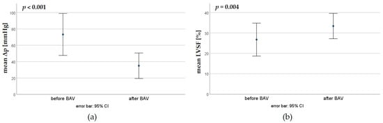 - Left ventricular shortening fraction (LVSF (%)) before and after BAV;