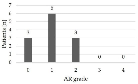 Echocardiographic assessment following the most recent BAV revealed no or only mild aortic regurgitation in 9/12 patients (75%), while 3/12 patients (25%) had moderate aortic regurgitation (Table 2, Figure 7). High-grade regurgitation did not occur.