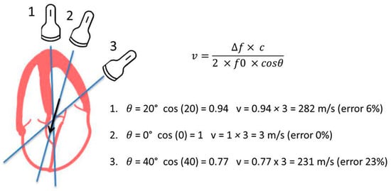 - Assessment of transvalvular flow velocity by Doppler technique is angle-dependent (see Figure 3).