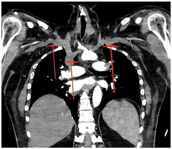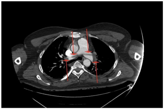 According to the European Society of Cardiology (ESC) guidelines for the diagnosis and management of acute PE, the immediate initiation of anticoagulant treatment with weight-adjusted LMWH or fondaparinux is preferred. UFH is only considered for unstable patients or for those with a high risk of bleeding; similar recommendations are given in the update based on the revised Association of the Scientific Medical Societies in Germany (AWMF) S2k Guideline on the management of DVT [7,8]. The patient we described did not show signs of shock on admission to the ED—he maintained normal BP values without the need for catecholamines, and his HR and SpO2 remained normal. However, together with PERT specialists, we decided to start with UFH treatment as, in the beginning, it was still unclear whether the surgical approach would be pursued, and the effect of UFH could be quickly reversed. The Pulmonary Embolism Thrombolysis (PEITHO) trial showed that, among normotensive patients and intermediate-risk PE, defined as the presence of RV cardiac dysfunction and elevated troponin levels, thrombolysis was associated with a significant reduction in the risk of haemodynamic decompensation or shock, but at the same time with an increased risk of major extracranial and intracranial bleeding [9]. Other options considered were pulmonary trunk mechanical thrombectomy up to open surgery, which involved putting the patient into deep hypothermia and connecting extracorporeal blood oxygenation (ECMO), followed by the removal of embolic material from both the pulmonary arteries and aorta. Studies comparing survival and PE recurrence rates among patients treated with thrombolysis or with embolectomy as first-line therapy showed no difference in terms of 30-day mortality or 5-year survival, but thrombolysis was associated with a higher risk of stroke, recurrent PE, and re-intervention after 30 days [10]. Aymard T. et al. showed that surgical embolectomy is an excellent treatment option for massive PE with comparable early mortality and significantly fewer bleeding complications than thrombolysis [11]. In the case described, embolic material was present not only in the pulmonary vessels, but also in the aortic arch and its branches. Furthermore, with the symptoms of RV overload present, the connection of ECMO was associated with their significant exacerbation and higher risk of death. The removal of embolic material from the arteries peripherally, or systemic thrombolysis, was also considered, but this was associated with a high risk of thrombus fragmentation and the displacement of embolic material into the cephalic arteries, which would result in ischaemic stroke. As Herman C.R. et al. described, aortic arch repair itself carries a significant risk of stroke: 4.7–6.0%. The endovascular approach lowers the risk, as it avoids extracorporeal circulation and possible hypothermic circulatory arrest; however, strokes after endovascular procedures of the aortic arch still show a significant risk rate of 4.2–5.9% [12]. Ultimately, it was therefore decided to retain only intravenous UFH infusion under APTT control, as the other options carried too much risk, and the patient was regularly reassessed by the PERT specialists.