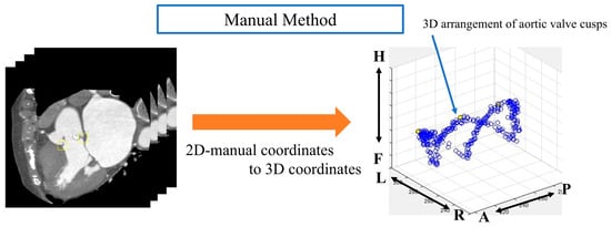 Automatic aortic valve extraction was performed using an object detector. After labeling all images, the center coordinates of the ROIs for both methods were displayed on a 3D plane (Figure 5 and Figure 6).