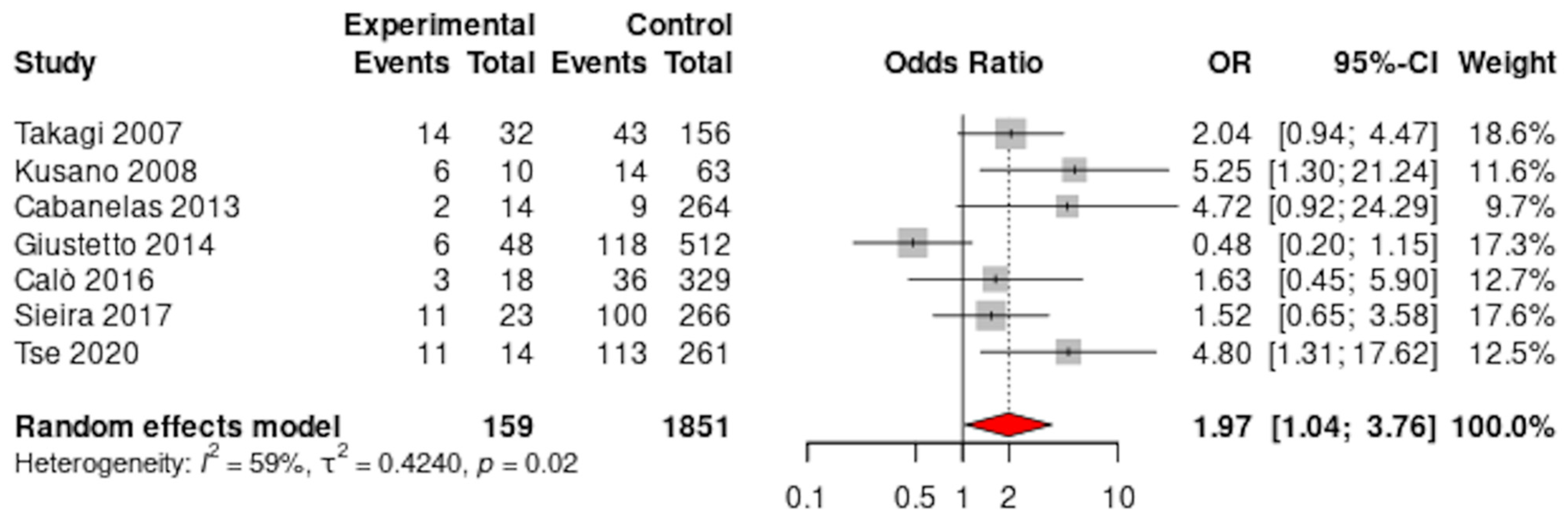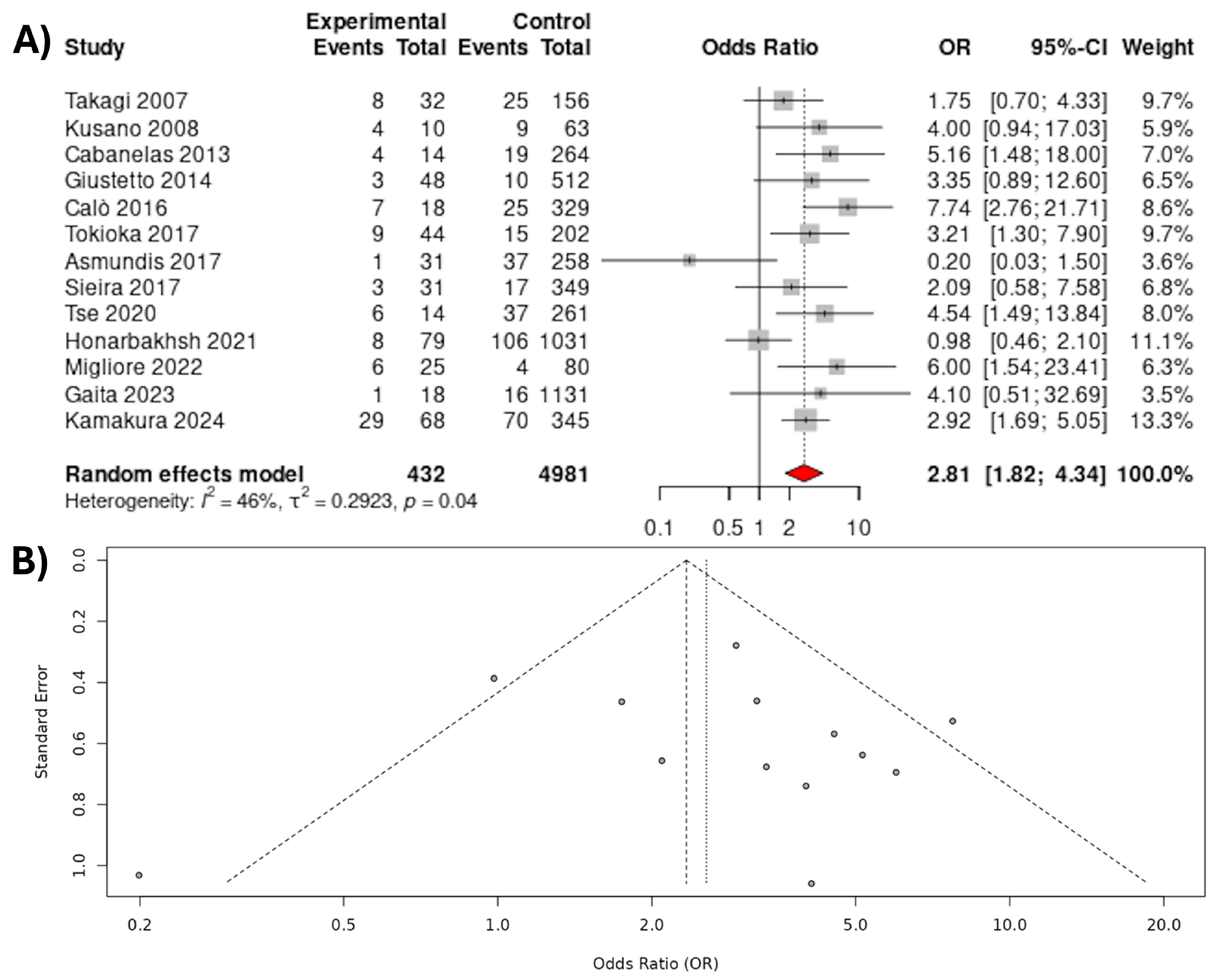 Study | Takagi 2007 [16] | Kusano 2008 [17] | Cabanelas 2013 [18] | Giustetto 2014 [19] | Calò 2016 [20] | Tokioka 2017 [21] | Asmundis 2017 [22] | Sieira 2017 [23] | Tse 2020 [24] | Honarbakhsh 2021 [25] | Migliore 2022 [26] | Gaita 2023 [27] | Kamakura 2024 [28] | |||||||||||||
