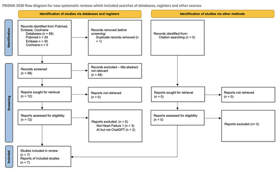 - Sharma, A.; Medapalli, T.; Alexandrou, M.; Brilakis, E.; Prasad, A. Exploring the Role of ChatGPT in Cardiology: A Systematic Review of the Current Literature. Cureus 2024, 16, e58936. [Google Scholar] [CrossRef] [PubMed]