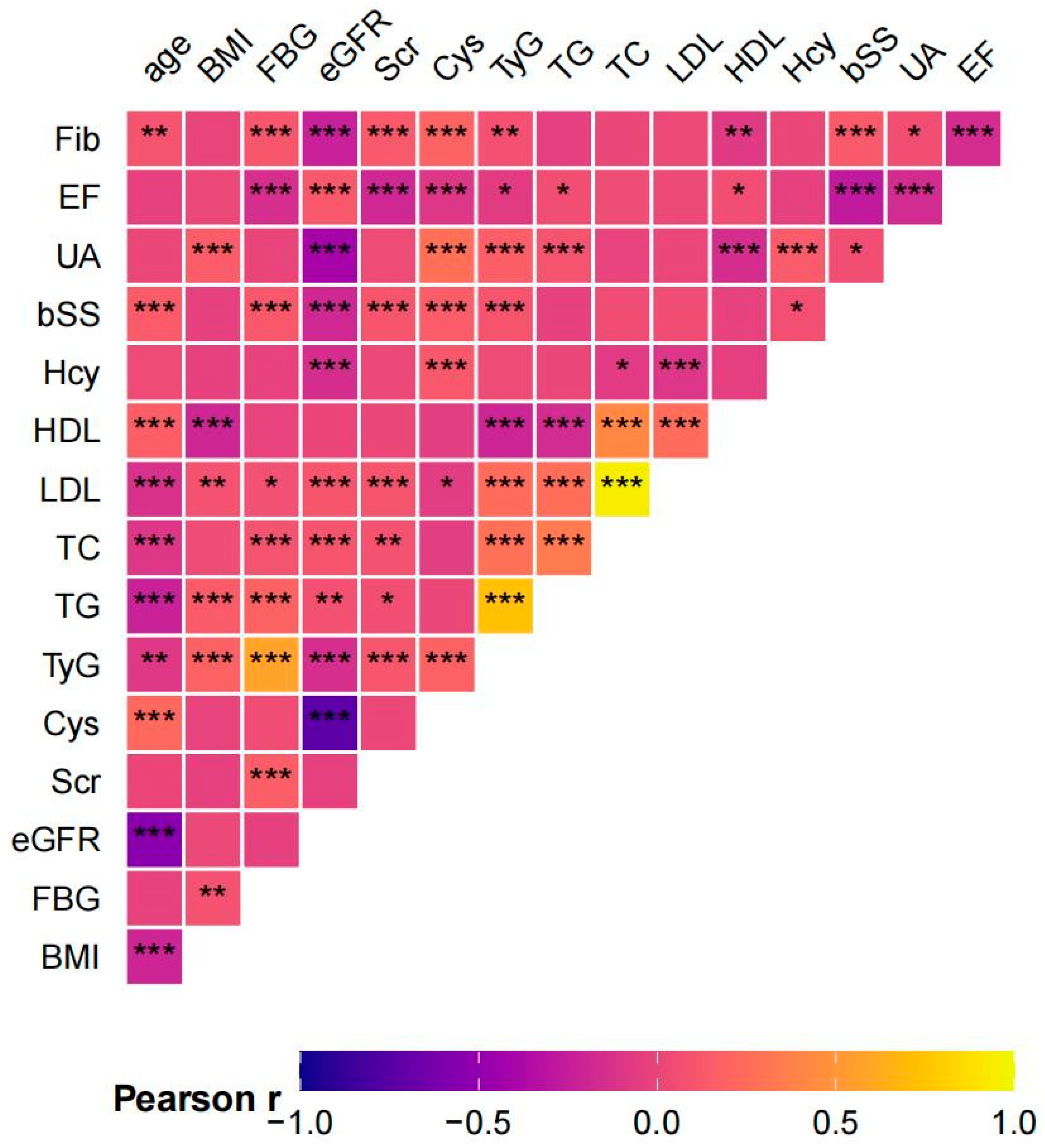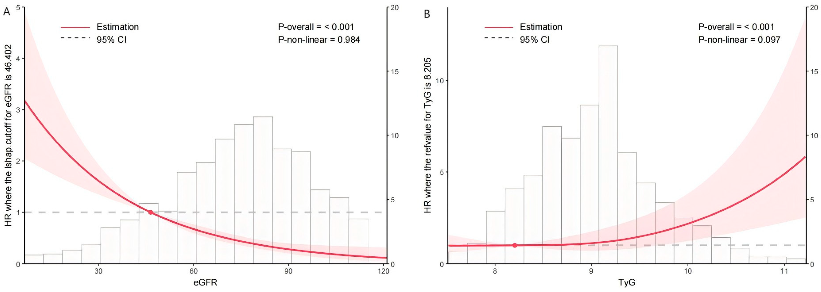 - Cui, C.; Liu, L.; Zhang, T.; Fang, L.; Mo, Z.; Qi, Y.; Zheng, J.; Wang, Z.; Xu, H.; Yan, H.; et al. Triglyceride-glucose index, renal function and cardiovascular disease: A national cohort study. Cardiovasc. Diabetol. 2023, 22, 325. [Google Scholar] [CrossRef]