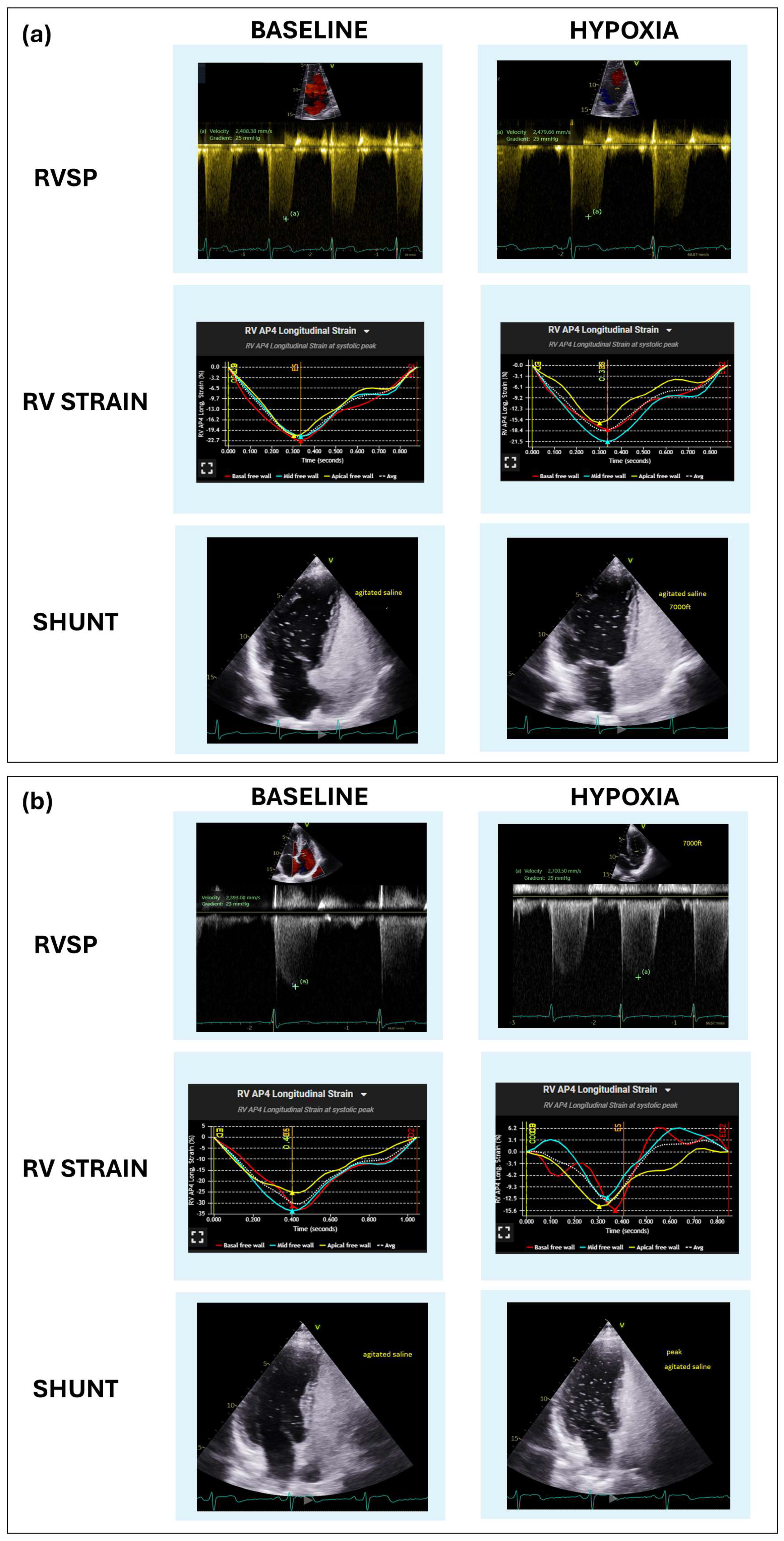 2.1. Hypoxic Simulation Testing Without Exercise—Transthoracic Echocardiography