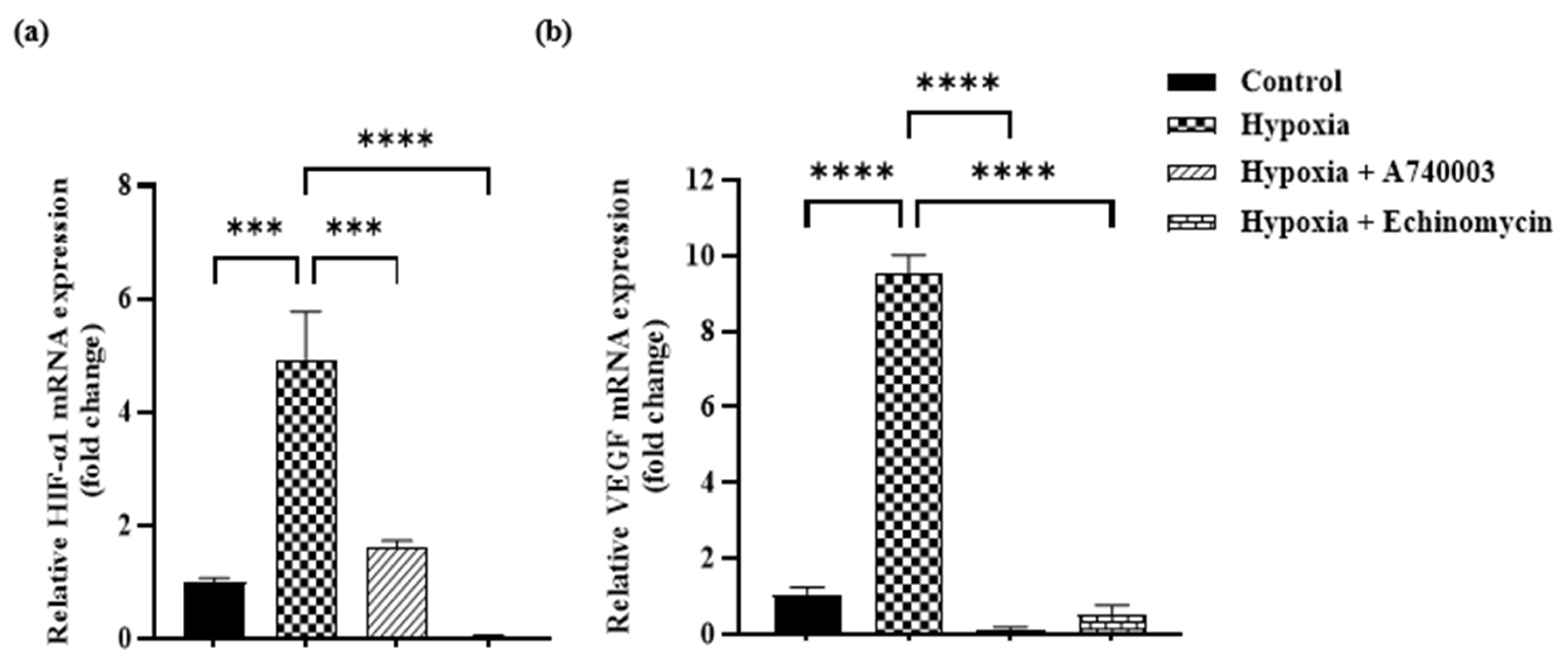 3.4. P2X7R Antagonist Inhibits Hypoxia-Induced Pro-Angiogenic Factor Signaling in H9c2 Cells