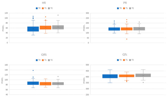 These ANCOVAs were ultimately adjusted using the respective baseline ECG variables (HR, PR, QRS, QT, and QTc) as covariates. The significance level was set to 0.05 for all analyses. Jeffrey’s Statistical Program (JASP), version 17.0 for Windows, was used for all investigations.