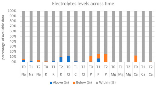Electrolyte levels in the three phases of recovery (T0, T1, T2).