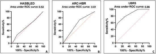 Furthermore, the performance of the UBRS, ARC-HBR and HASBLED scores in predicting gastrointestinal bleeding was evaluated using a ROC curve by a Wilson–Brown hybrid method for the analysis. A two-sided p-value < 0.05 was considered statistically significant for single tests, whereas for multiple testing, the significance level was adjusted using the Bonferroni correction. All statistical analyses were performed using R studio software (version 1.4.1103 2009–2021 RStudio, PBC) and IBM SPSS (version 29.0.2.0 (20)).