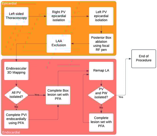 Recently, different research groups have developed various hybrid minimally invasive techniques, combining the effectiveness of surgical procedures with the safety profile of endovascular catheter ablation techniques [11,12,13,14].