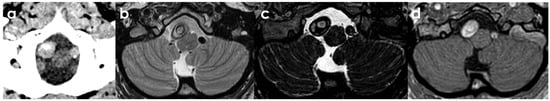 - Mascalchi, M.; Bianchi, M.C.; Mangiafico, S.; Ferrito, G.; Puglioli, M.; Marin, E.; Mugnai, S.; Canapicchi, R.; Quilici, N.; Inzitari, D. MRI and MR angiography of vertebral artery dissection. Neuroradiology 1997, 39, 329–340. [Google Scholar] [CrossRef]