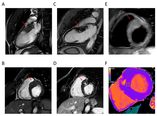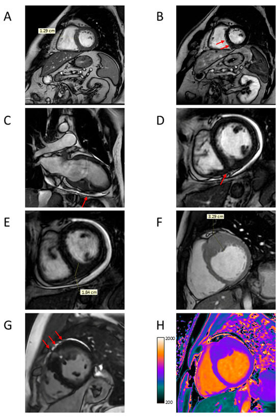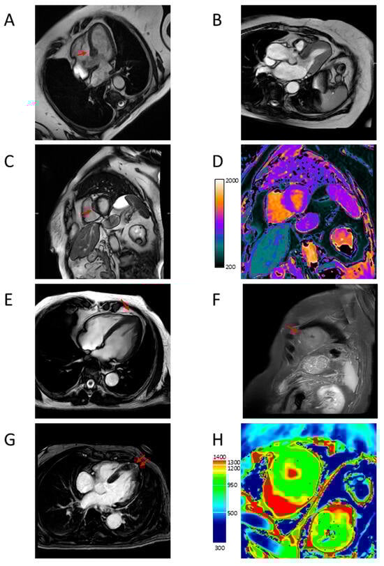 - Hundley, W.G.; Bluemke, D.A.; Bogaert, J.; Flamm, S.D.; Fontana, M.; Friedrich, M.G.; Grosse-Wortmann, L.; Karamitsos, T.D.; Kramer, C.M.; Kwong, R.Y.; et al. Society for Cardiovascular Magnetic Resonance (SCMR) guidelines for reporting cardiovascular magnetic resonance examinations. J. Cardiovasc. Magn. Reson. 2022, 24, 29. [Google Scholar] [CrossRef]