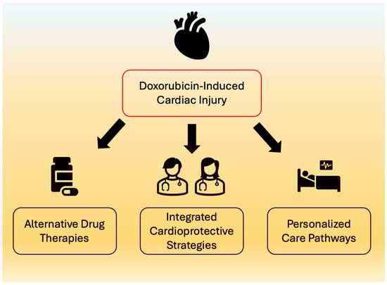 Future management of doxorubicin-induced cardiac injury. Forthcoming research and clinical strategies should prioritize the development of safe alternative drug therapies, integrated cardioprotective care models such as cardio-oncology, and personalized prevention and treatment pathways for patients.