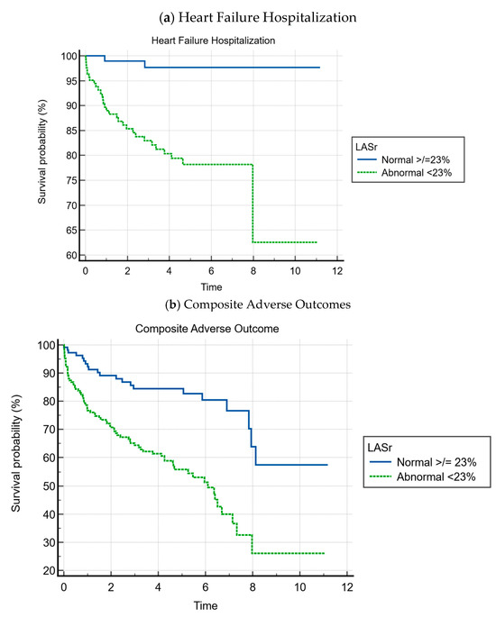 - Composite event-free survival was 55.2% for patients with abnormal LASr vs. 82.4% for patients with normal LASr (p < 0.001).