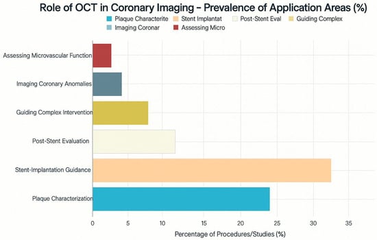 Prevalance of application areas of OCT in coronary imaging with percentages.