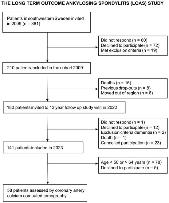 Hulander E, Deminger A, Enegren S, Hallström M, Feldthusen C, Fagman E, Angerås O, Zverkova Sandström T, Geijer M, Forsblad-d’Elia H. Coronary Artery Calcification in Patients with Radiographic Axial Spondyloarthritis: A Comparative Study with Matched Controls in Southwestern Sweden. Journal of Cardiovascular Development and Disease. 2025; 12(8):305. https://doi.org/10.3390/jcdd12080305
